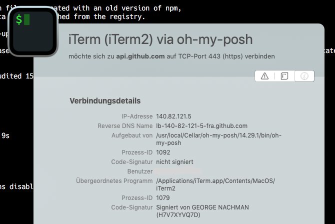 I love Oh My Posh but, I dislike that it does unsolicited calls to api.github.com, any time I fire up my Terminal client. I haven't found an elegant way to disable this unwanted feature, other than have my network filter block Oh My Posh from contacting api.github.com.