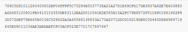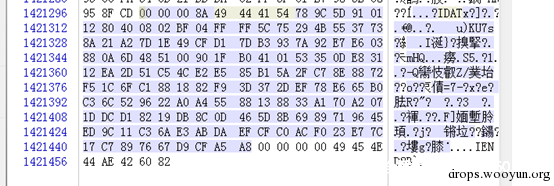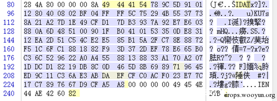 我们用winhex把这一部分异常的IDAT块给扣出来。然后就是要研究研究这个块是什么情况,发现了载体之后就是要想办法找出他的规律。观察那一 部分的数据,可以看到是16进制的78 9C开头的,百度一下分析是zlib压缩的标志。在png的百度百科里也可以查到PNG的IDAT是使用从LZ77派生的无损数据压缩算法,可以用 zlib解压。那么就尝试用zlib来解一下这段数据。Zlib的扩展阅读http://zlib.net/
