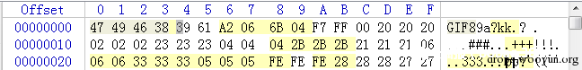 用winhex打开,我们会发现他和普通的GIF图片不一样,头部缺少了东西,在对比一些文档,会发现是少了GIF8。