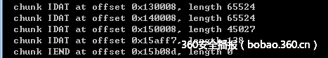 可以看到,正常的块的length是在65524的时候就满了,而倒数第二个IDAT块长度是45027,最后一个长度是138,很明显最后一个IDAT块是有问题的,因为他本来应该并入到倒数第二个未满的块里。