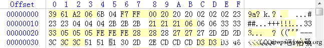这个题还有一个坑点就是偏移的问题 png图片的扫描是从左向右,从下往上来的。而坑的是这个图的信息隐藏并没有在一开头的像数,而是是第二行像数,所以就需要利用bmp的优势,储存无压 缩,方便寻找到偏移,从而找到信息隐藏的地方。利用winhex打开,黑色的像数的在bmp中的hex的00保存的,那么我们就寻找不是00的地方。在偏 移0x1110的地方可以发现