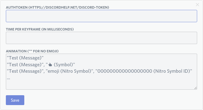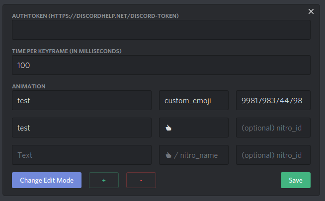 "Test (Message)", "emoji (Nitro Symbol)", "000000000000000000 (Nitro Symbol ID)"