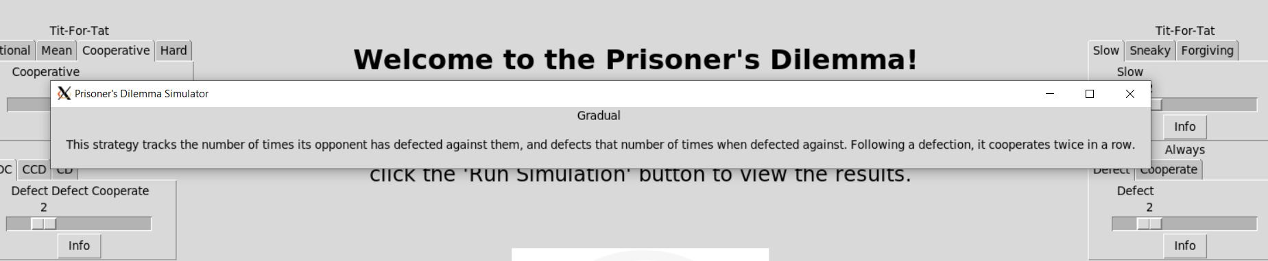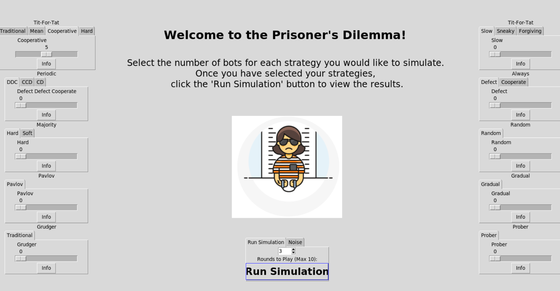 Simulator for the classical prisoner dilemma game.