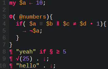 print "hello" . "\n";With concealing :