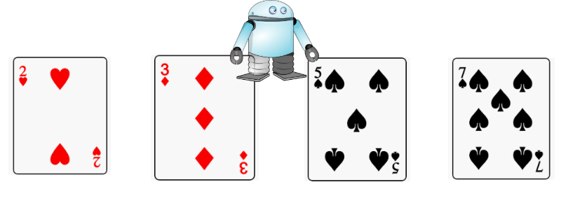 An offline activity for teaching CS concepts: programs, algorithms, sorting, assumptions, correctness, computational complexity etc. etc. Requires: pen, paper and a deck of cards.