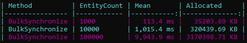 - Memory Usage: Synchronization is optimized to minimize allocations, keeping resource usage reasonable even on large datasets.