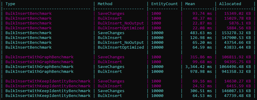 - Performance: EF Extensions delivers substantial speed improvements, often making large data operations complete several times faster.